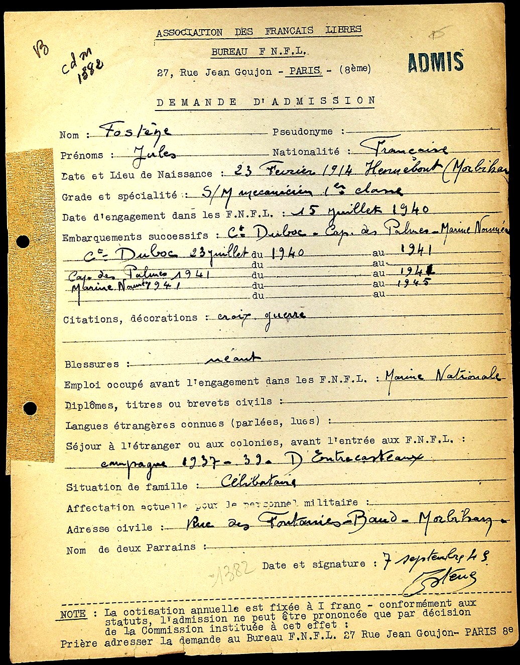 Grade atteint pendant la guerre :