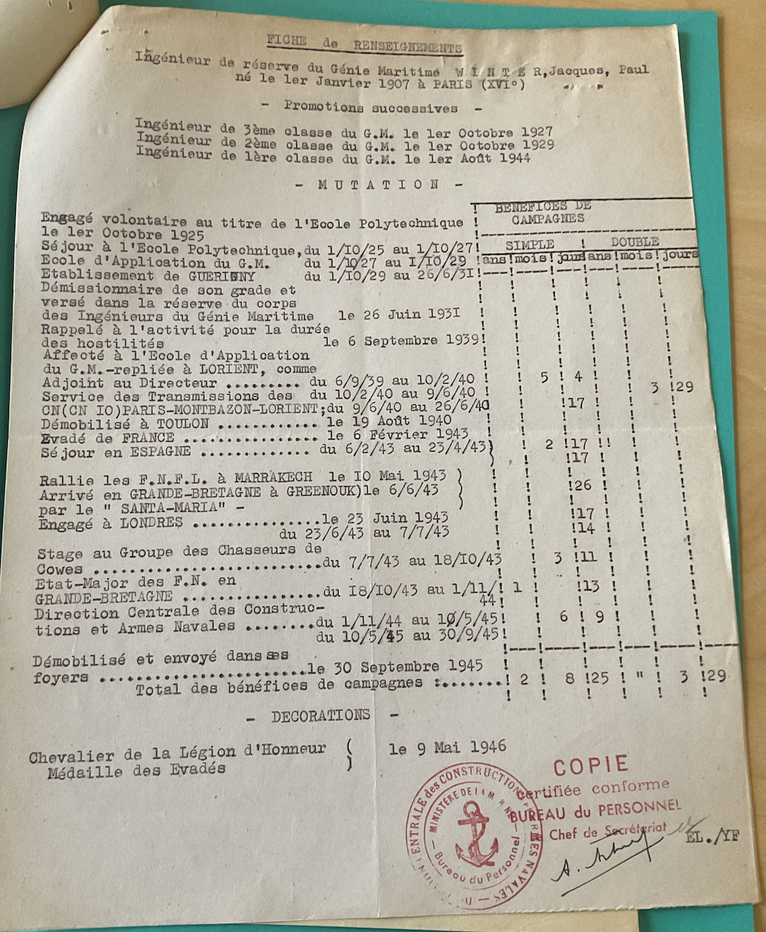Grade atteint pendant la guerre :