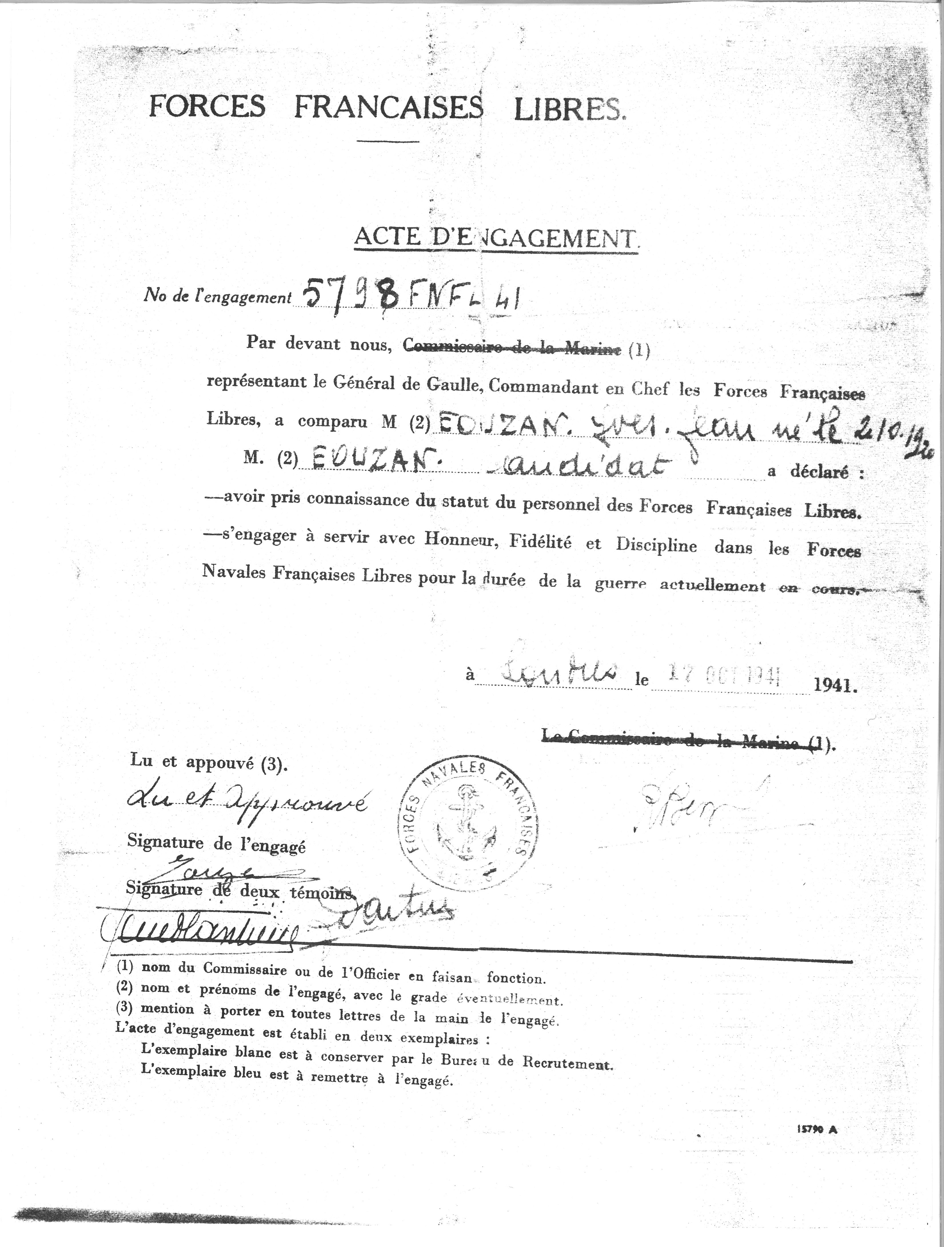 Yves Eouzan était embarqué sur le PLM 22 en juin 1940, lorsque ce cargo se trouvait à Newcastle-upon-Tyne, où il fut réquisitionné par les Britanniques le 17 juillet. Il a fait partie des 10 % de l'équipage qui ont rallié la France libre.