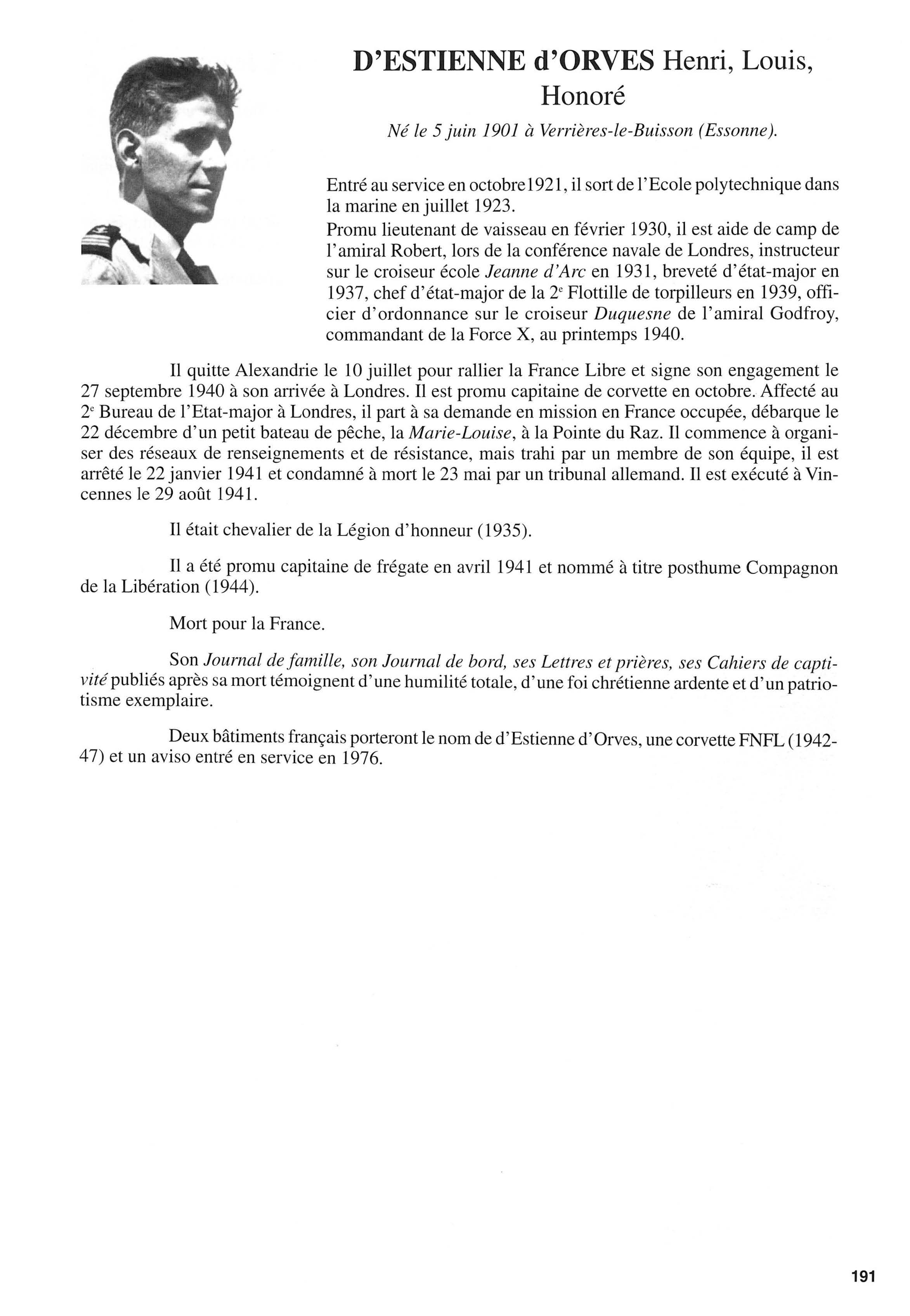 - Rose et Philippe HONORÉ D'ESTIENNE D'ORVES, Honoré d'Estienne d'Orves - Pionnier de la Résistance, Editions France-Empire, 1985, pp. 68-119