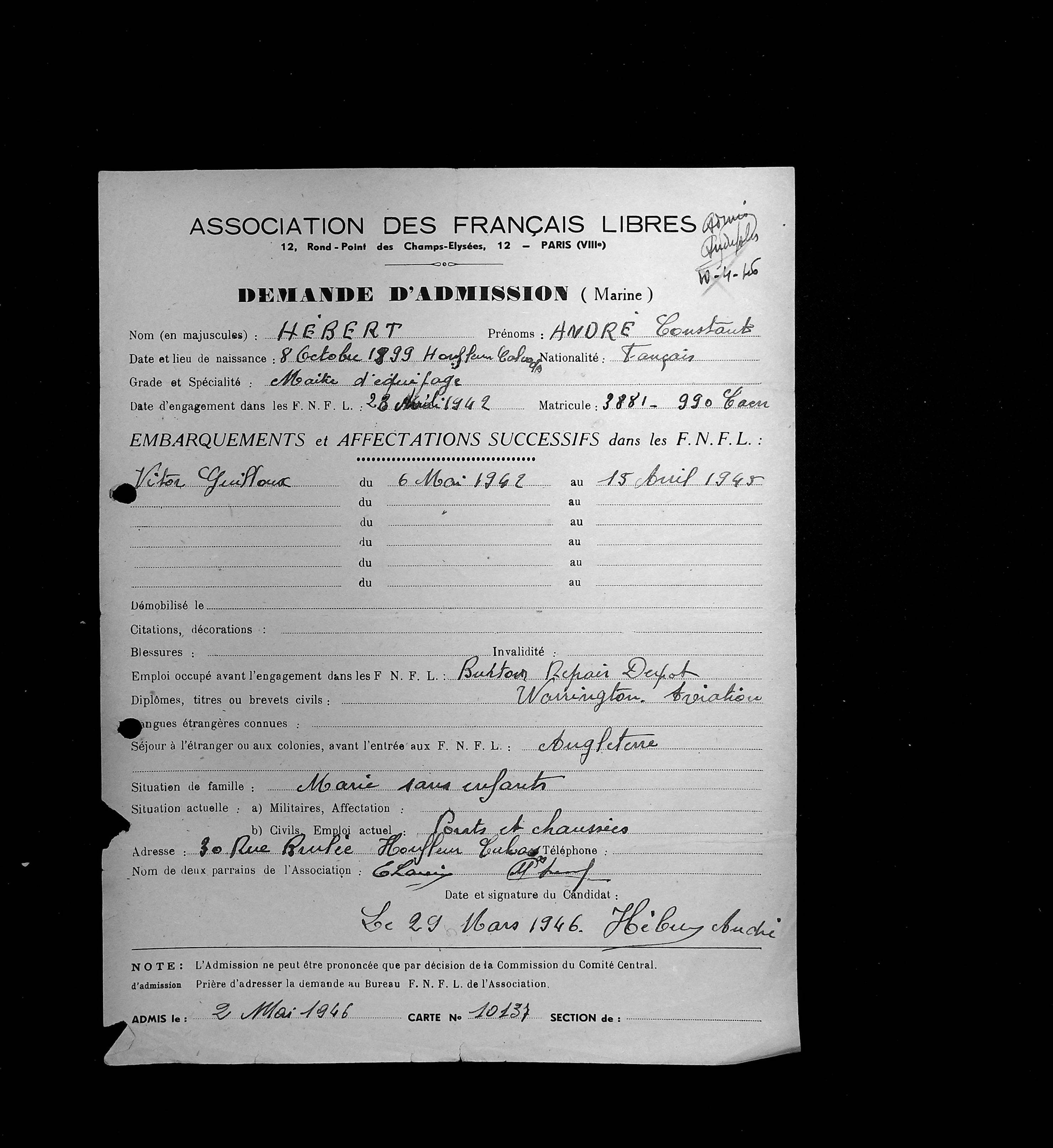Grade atteint pendant la guerre :