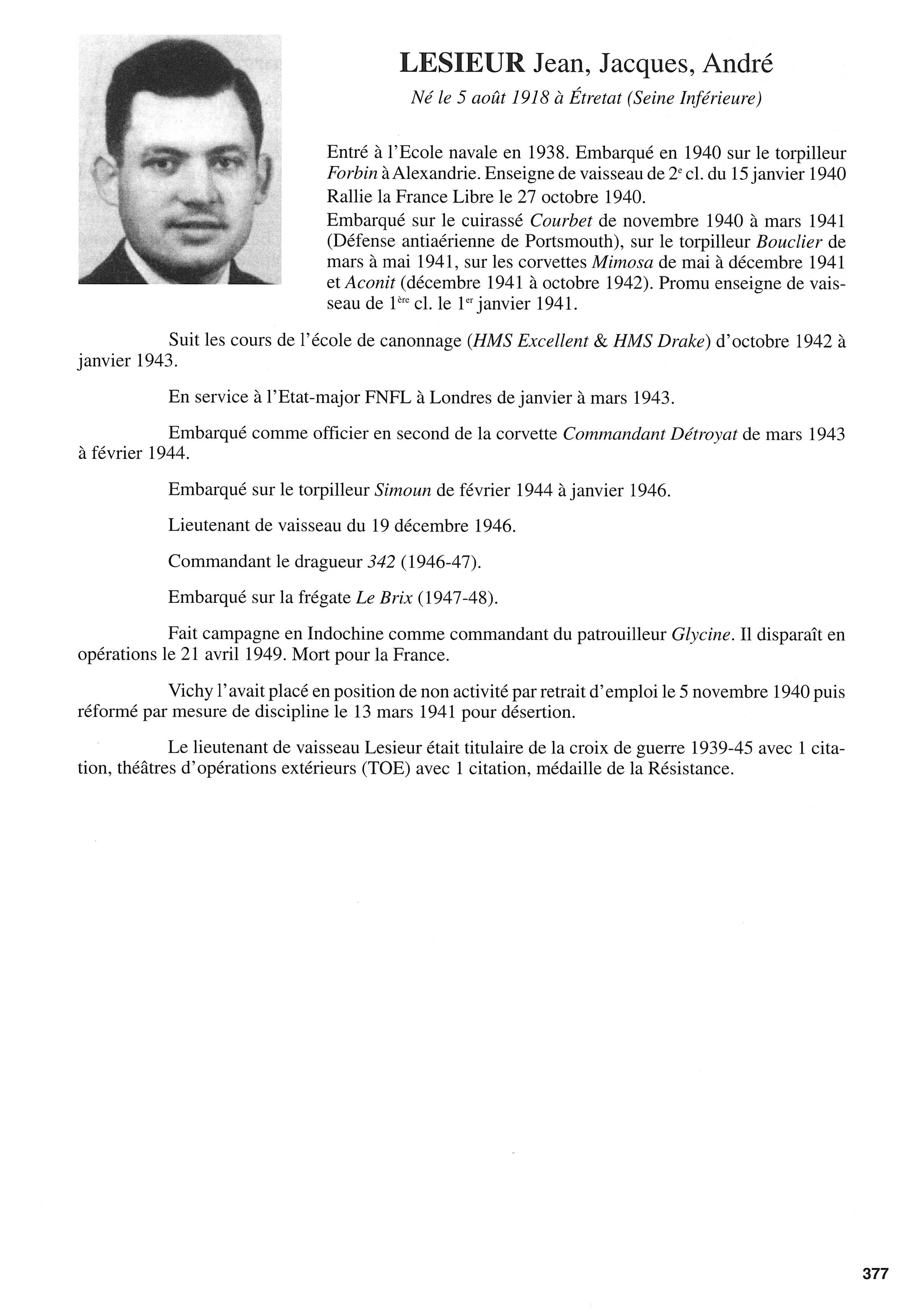 Cette citation comporte l'attribution de la croix de guerre des TOE avec palme au LV Lesieur.